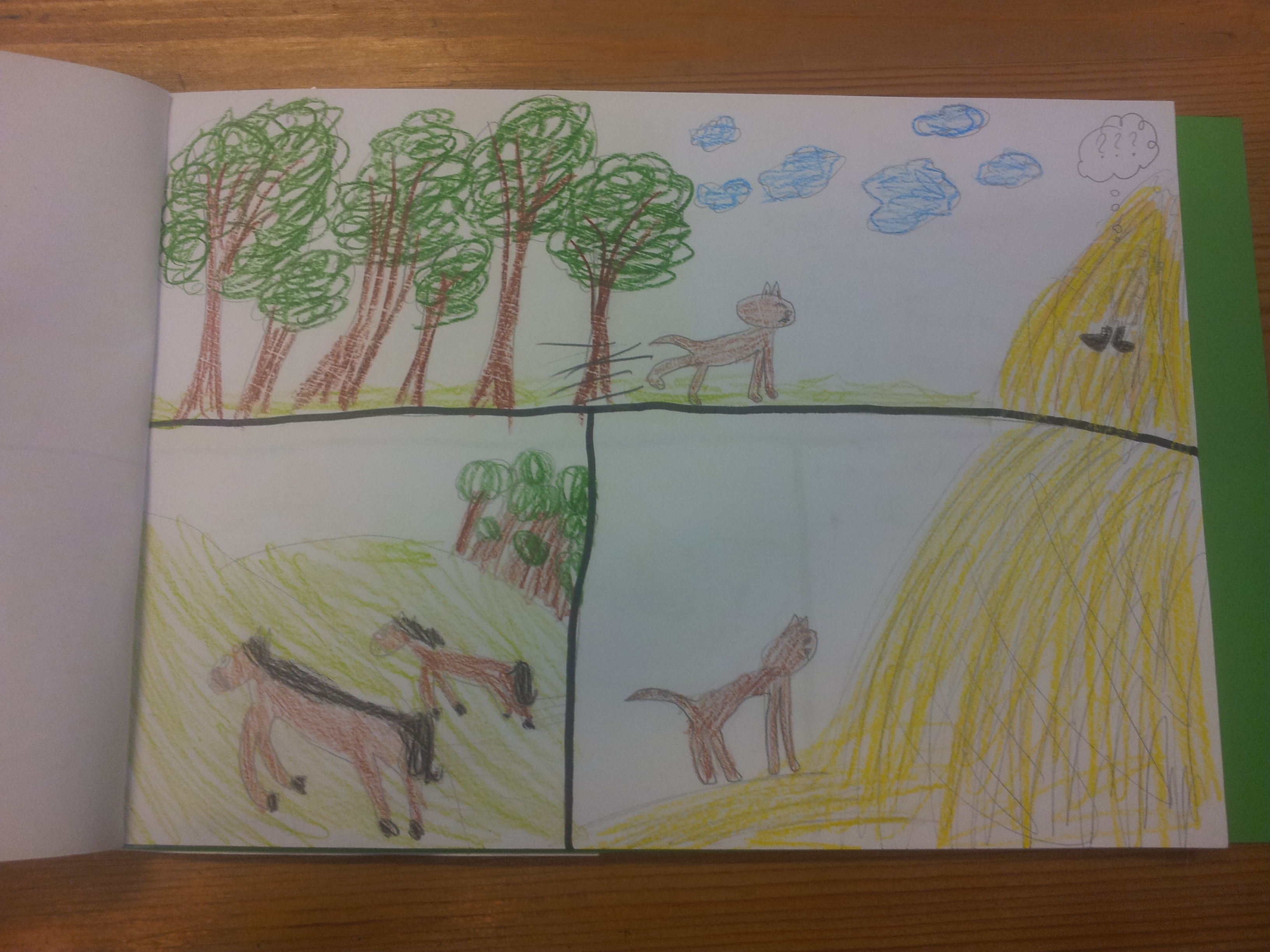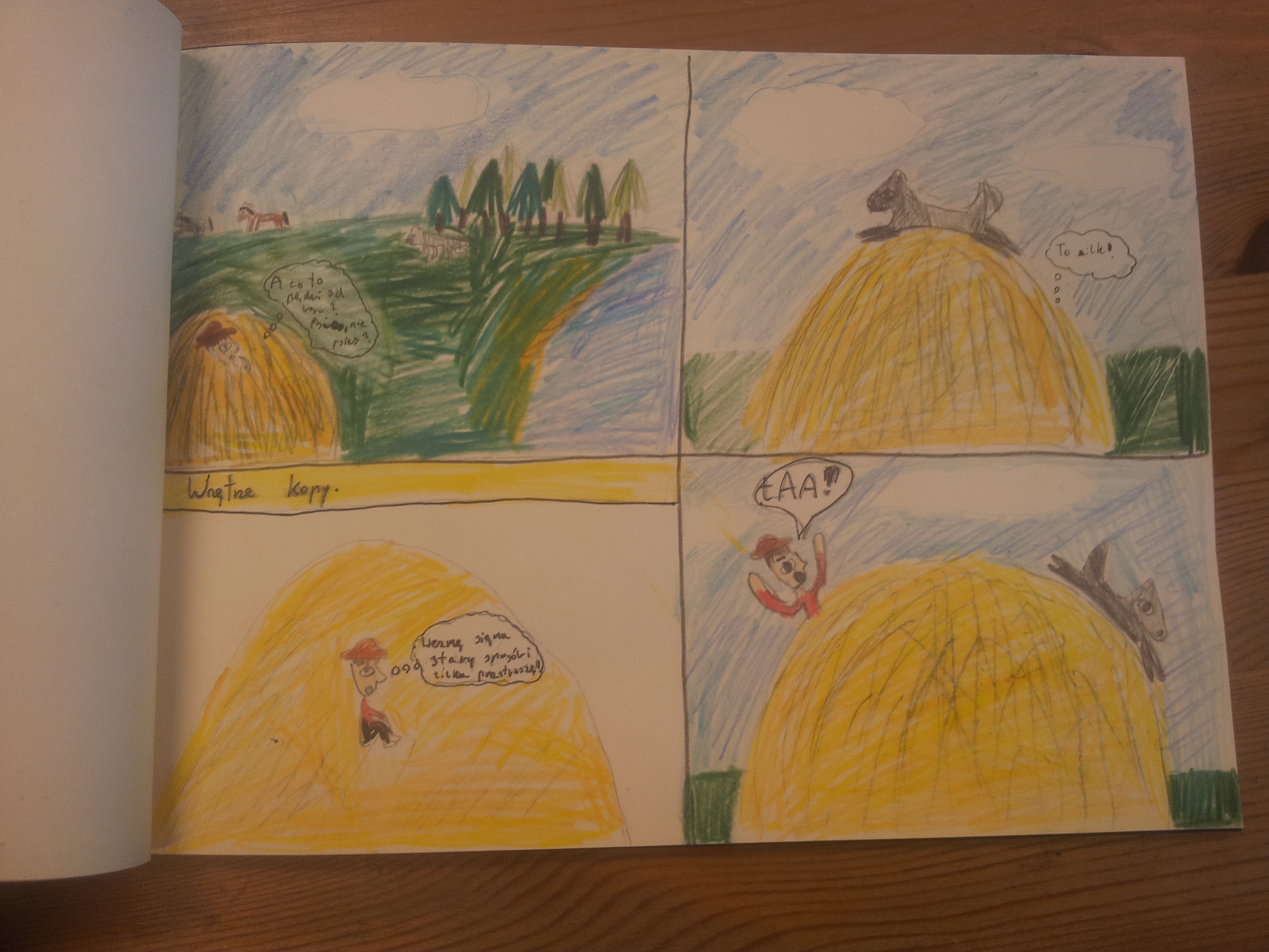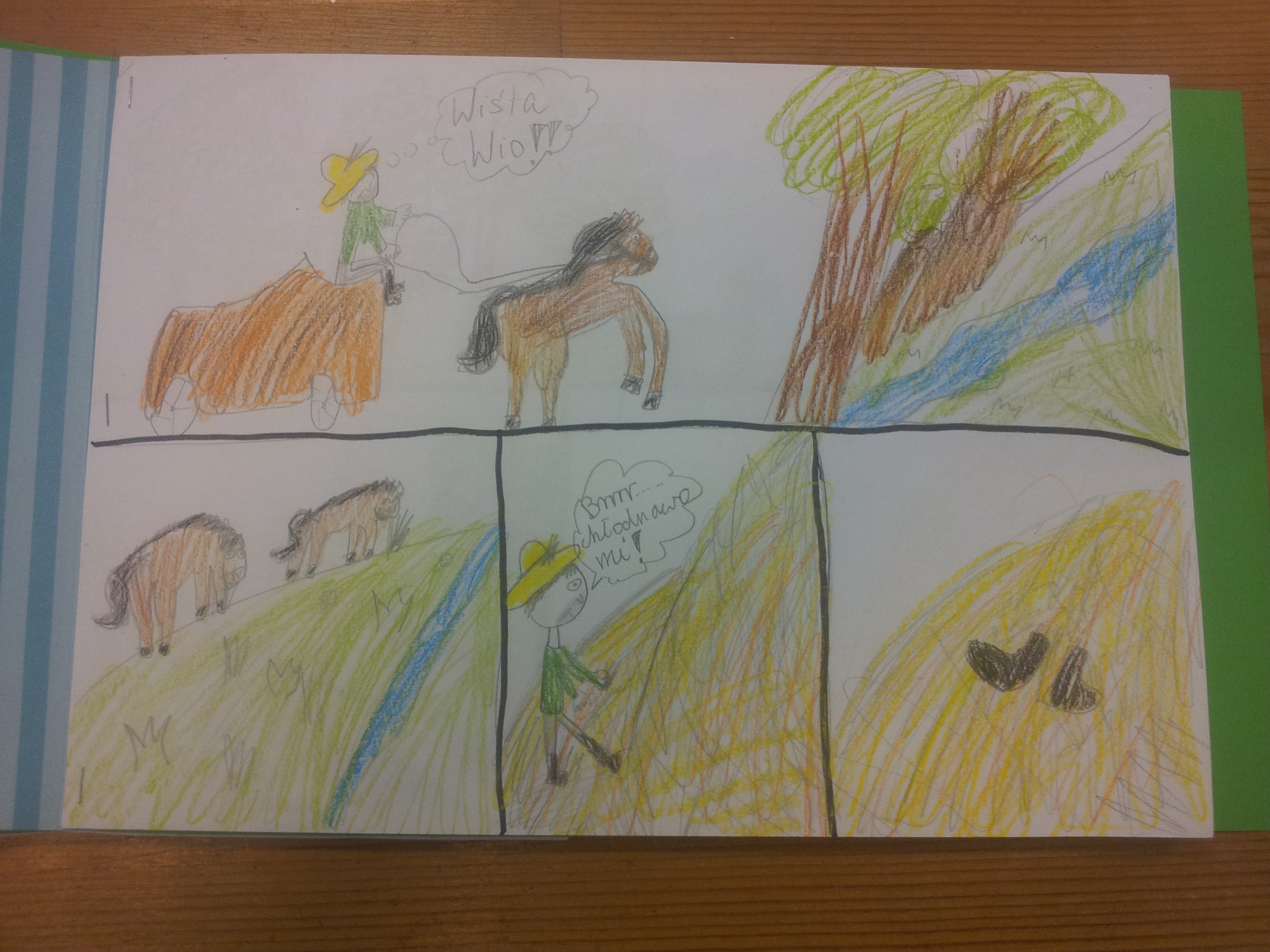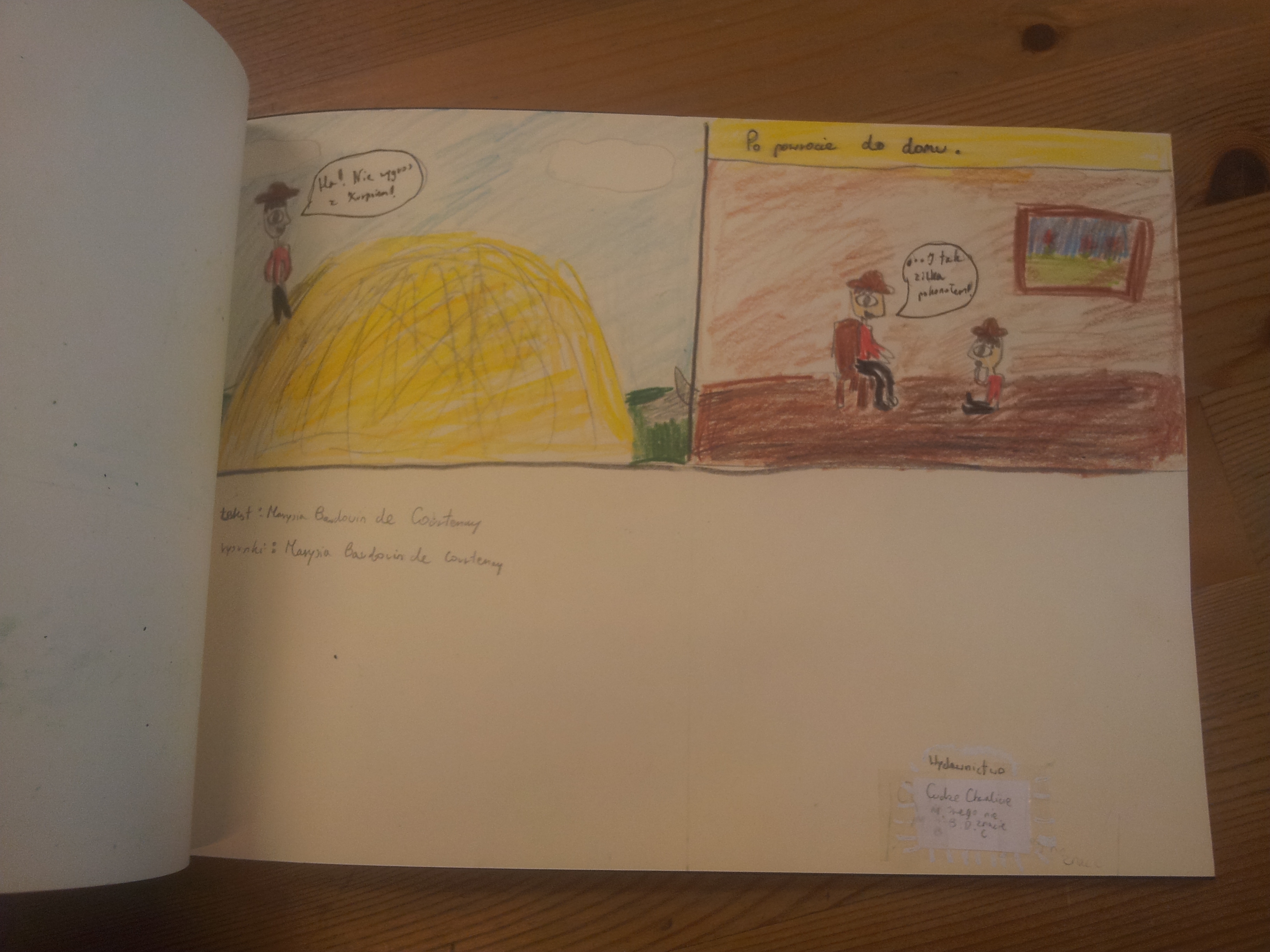 Kurpie to region, gdzie spotkać się można nie tylko z ciekawymi wzorami ludowymi, ale także z gwarą kurpiowską. Narysuj komiks ilustrujący kurpiowskie opowiadanie (w załączniku, na końcu). Wykorzystaj w ilustracjach charakterystyczne motywy kurpiowskie, a w dialogach kurpiowską gwarę. Włóż komiks do foliowej koszulki, tak go łatwiej zdezynfekować.
