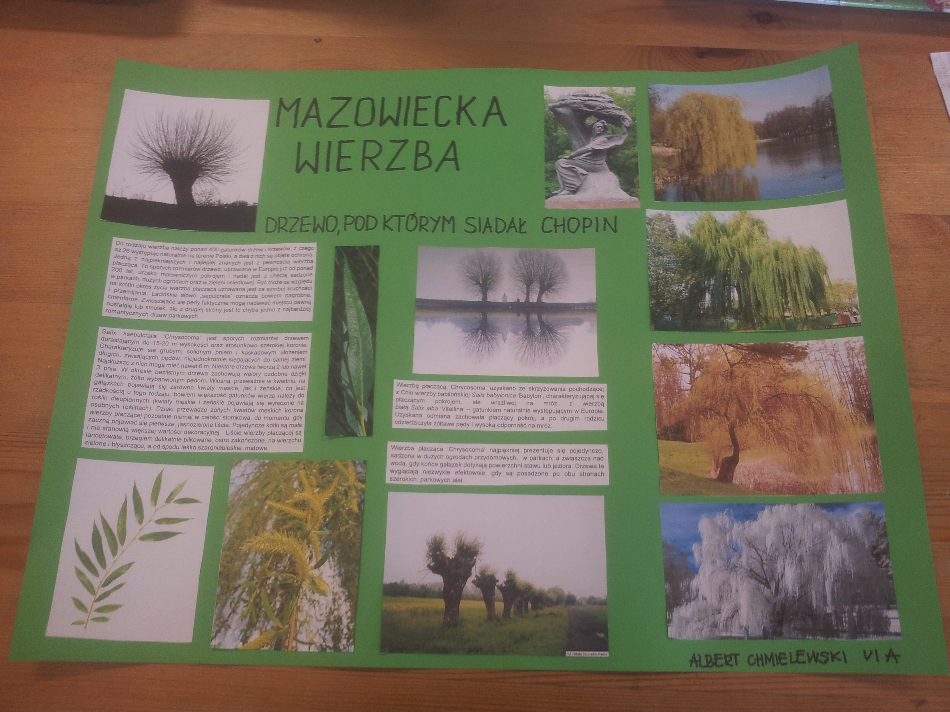 W krajobrazie Mazowsza wyróżniają się wierzby rosnące na miedzach, przy drogach i rowach. Przygotuj plakat z mazowiecką wierzbą w roli głównej. Dowiedz się, skąd charakterystyczny jej kształt i do czego wykorzystywano wierzbowe gałęzie i witki. Sprawdź czy jej sylwetka pojawia się w sztuce, poszukaj artystycznych zdjęć i przyrodniczych ciekawostek.