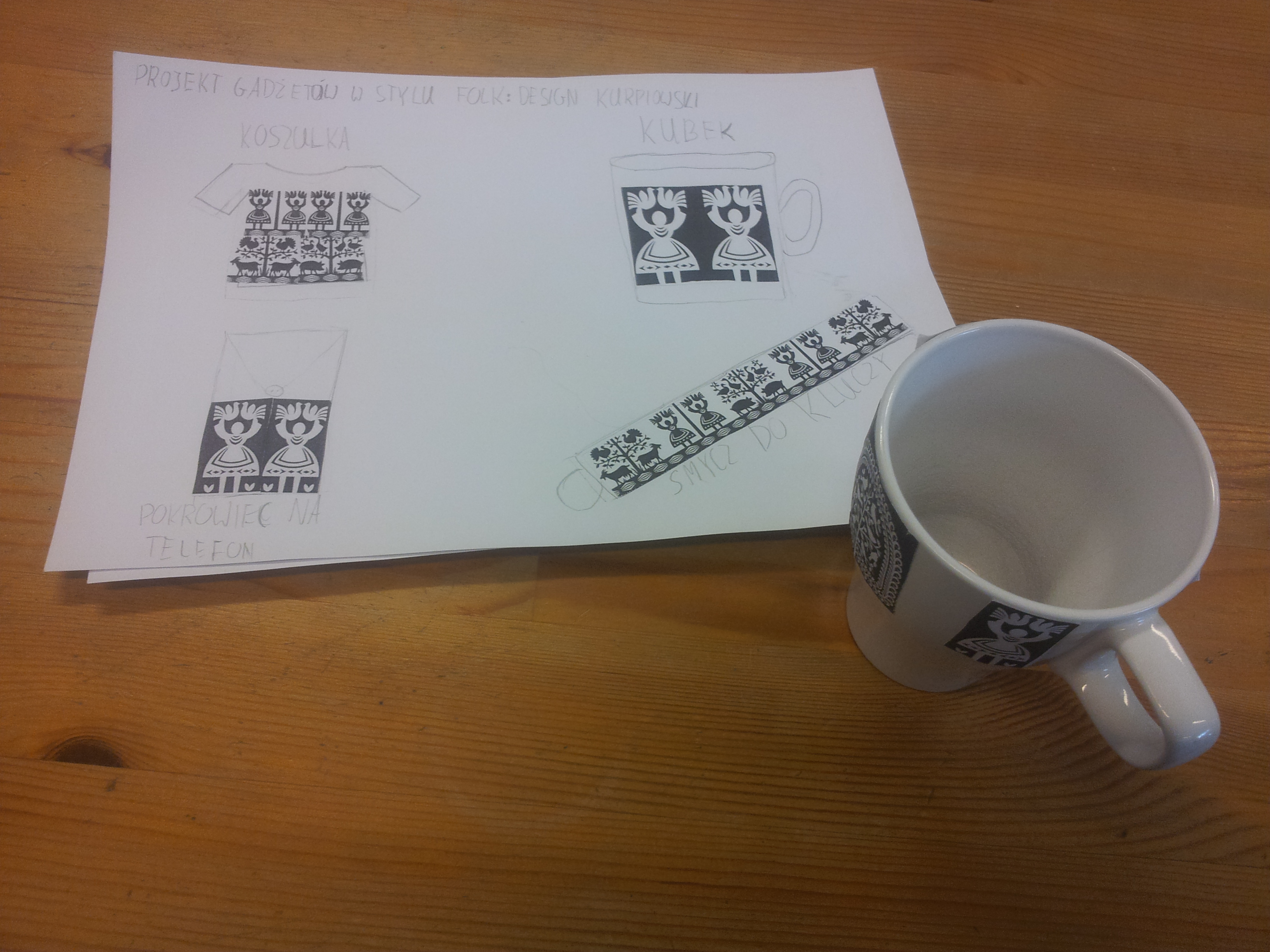 Przyjrzyj się plastycznym motywom folkloru kurpiowskiego np. w skansenie kurpiowskim w Nowogrodzie, Kadzidle, Wachu, Myszyńcu. Wykorzystaj je i przygotuj projekt kolekcji gadżetów w stylu folk: koszulki, czapki, torby, pokrowiec na komórkę, kubek, smycz do kluczy itp. Postaraj się przygotować na wystawę choć jeden element kolekcji. Zajrzyj na stronę http://folkstar.pl Design regionalny może być hitem! Przygotuj zdjęcia swoich projektów i włóż je w foliowe koszulki.