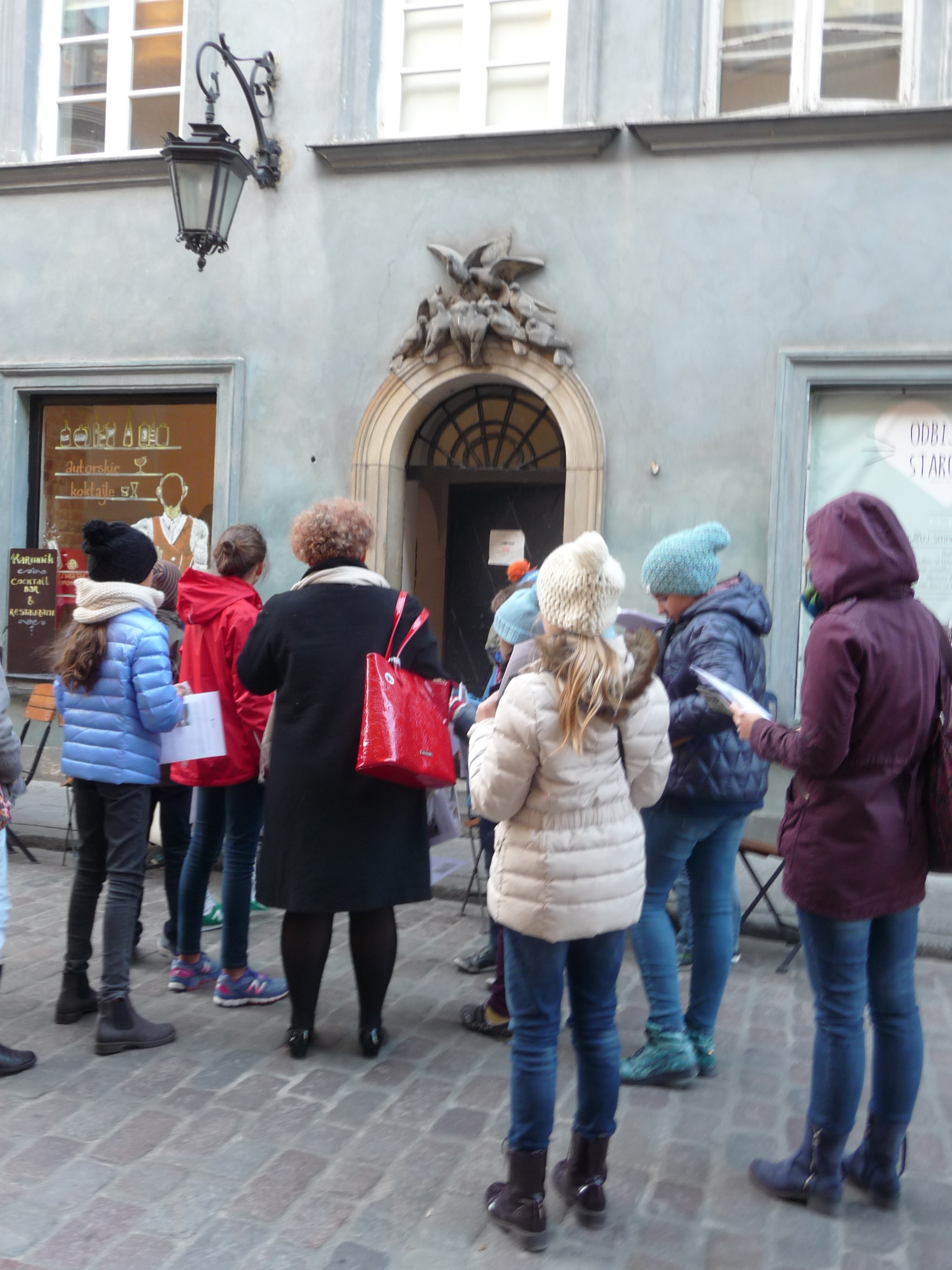 Zapowiedziana gra miejska o UNESCO odbyła się 28 października. Organizatorem było Centrum Interpretacji Zabytku czyli miejsce powołane do życia , dlatego że Warszawa jej odbudowana Starówka została wpisane na listę UNESCO jako część dziedzictwa kultury światowej. Odkryliśmy sporo detali pieczołowicie wyłuskanych z gruzowisk, jakim stało się Stare Miasto zniszczone przez Niemców po Powstaniu Warszawskim. Ale wola mieszkańców i praca włożona w odbudowę serca historycznego Warszawy oraz konserwatorska troska m.in. prof. Zachwatowicza sprawiły, ze zrekonstruowana Starówka znalazła się na liście światowego Dziedzictwa Kulturowego. Odkryliśmy wiele szczegółów architektonicznych, wartych pokazywana innym i nawet organizatorki projektu, nie tylko uczniowie niektóre rzeczy zobaczyły na nowo lub po raz pierwszy. Każdego z nas dotyczy hasło: …. swego nie znacie. Ale po grze miejskiej i wyjaśnieniach w Centrum Interpretacji Zabytku o swoim mieście wiemy dużo, dużo więcej.