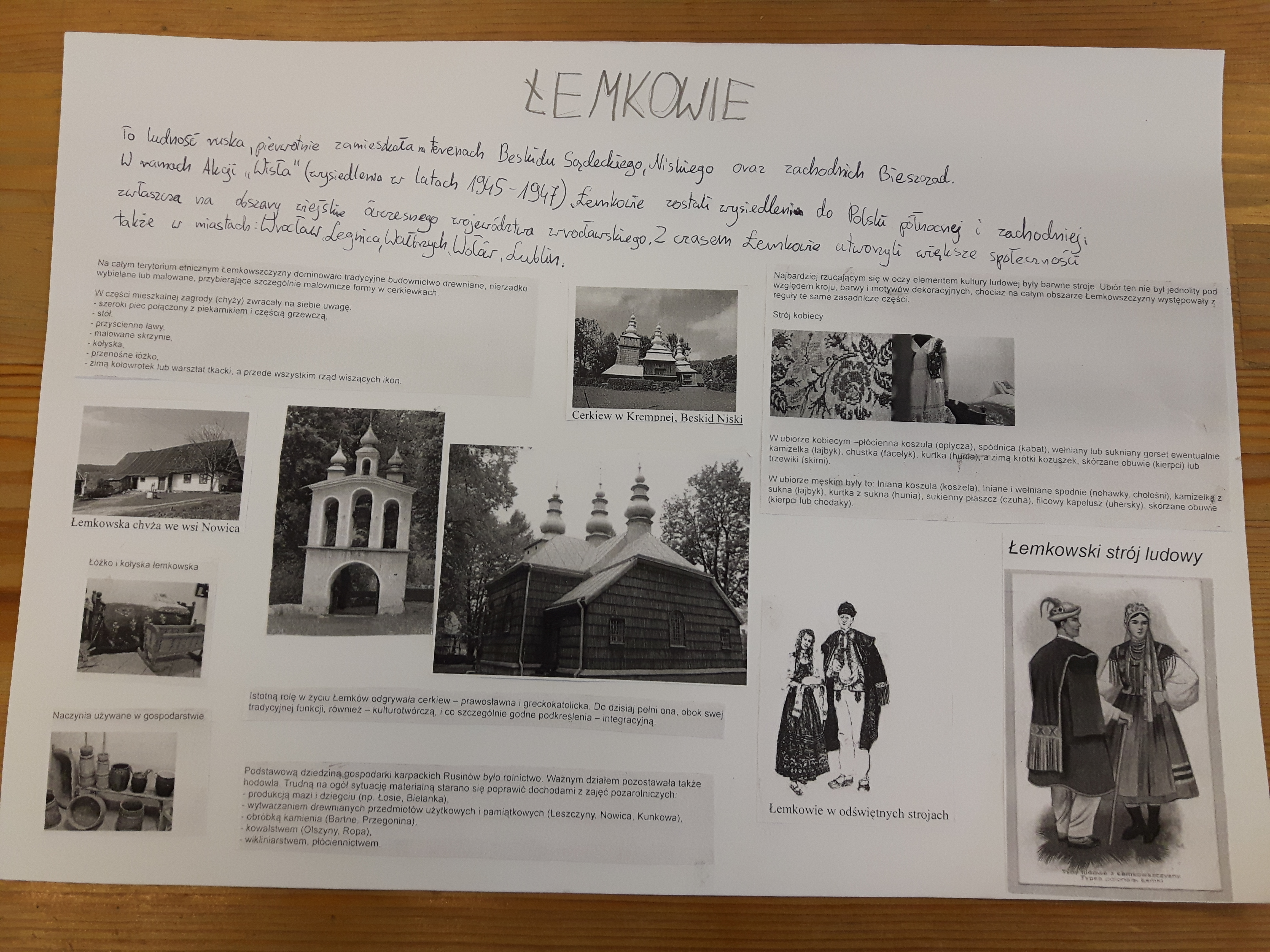 Przed II wojną światową wschodnia Polska była zamieszkiwana przez ludność rozmaitych narodowości. Sprawdź, co znaczy termin mniejszości narodowe. Dowiedz się czy obecnie zamieszkują Polskę mniejszości narodowe, gdzie można spotkać przedstawicieli innych kultur i jakie ślady pozostały po nich z dawnych czasów. Przygotuj ilustrowany informator dla uczniów twojej klasy o mniejszościach narodowych na wschodzie Polski. Dodaj stare zdjęcia i współczesne fotografie pamiątek, pozostałych po innych kulturach na ziemiach południowo-wschodniej Polski.