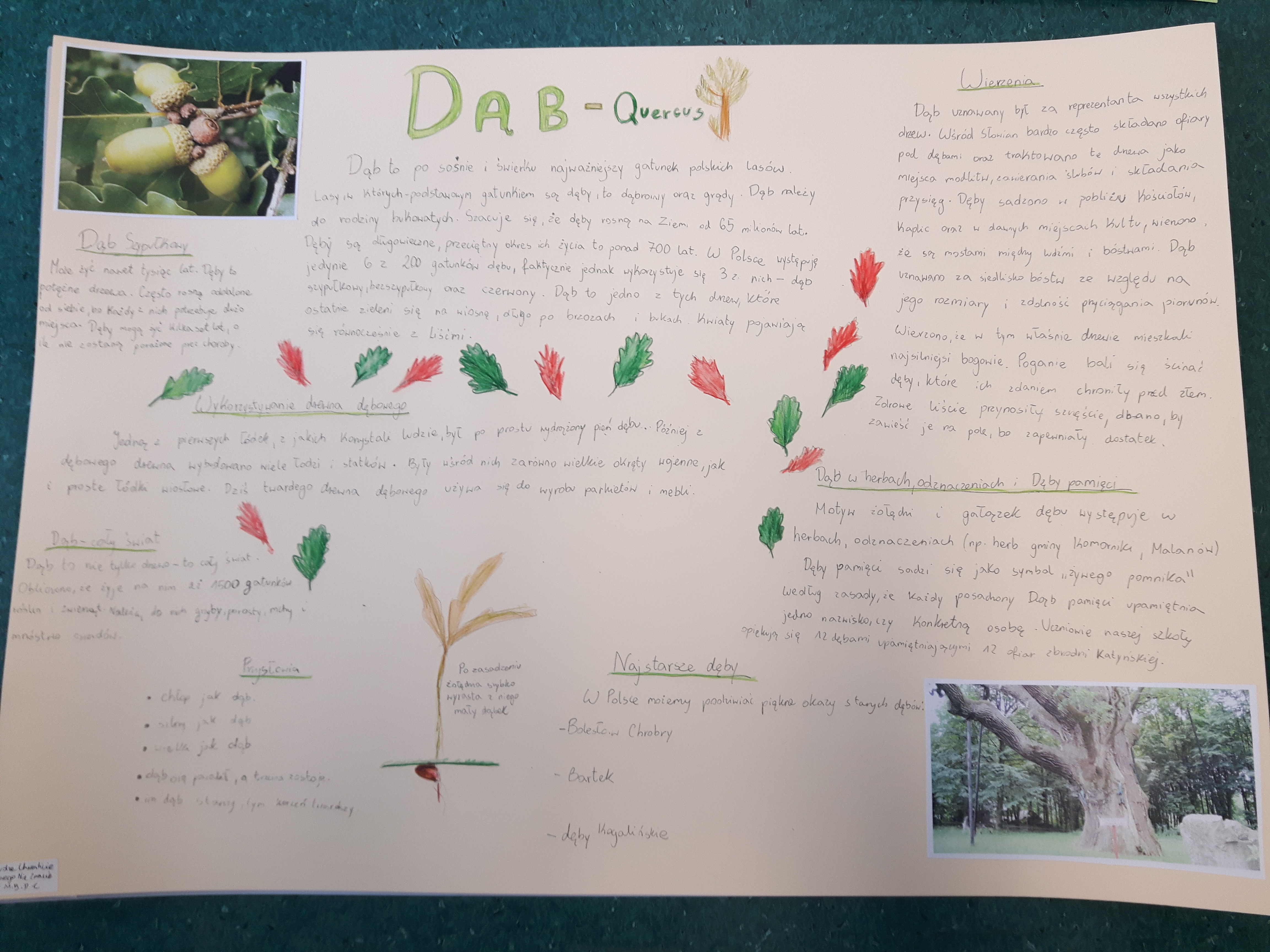 W każdej dzielnicy jest sporo starych drzew np. niedaleko szkoły rośnie ostaniec Puszczy Mazowieckiej szypułkowy dąb Mieszko I. Ma ponad 1000 lat. Takich Pomników Przyrody jest w warszawie 47. Wsłuchaj się w ich opowieść historyczną i osobistą i narysuj komiks o tym, co drzewo lub głaz widziały i co im osobiście mogło się przydarzyć podczas tych wydarzeń.