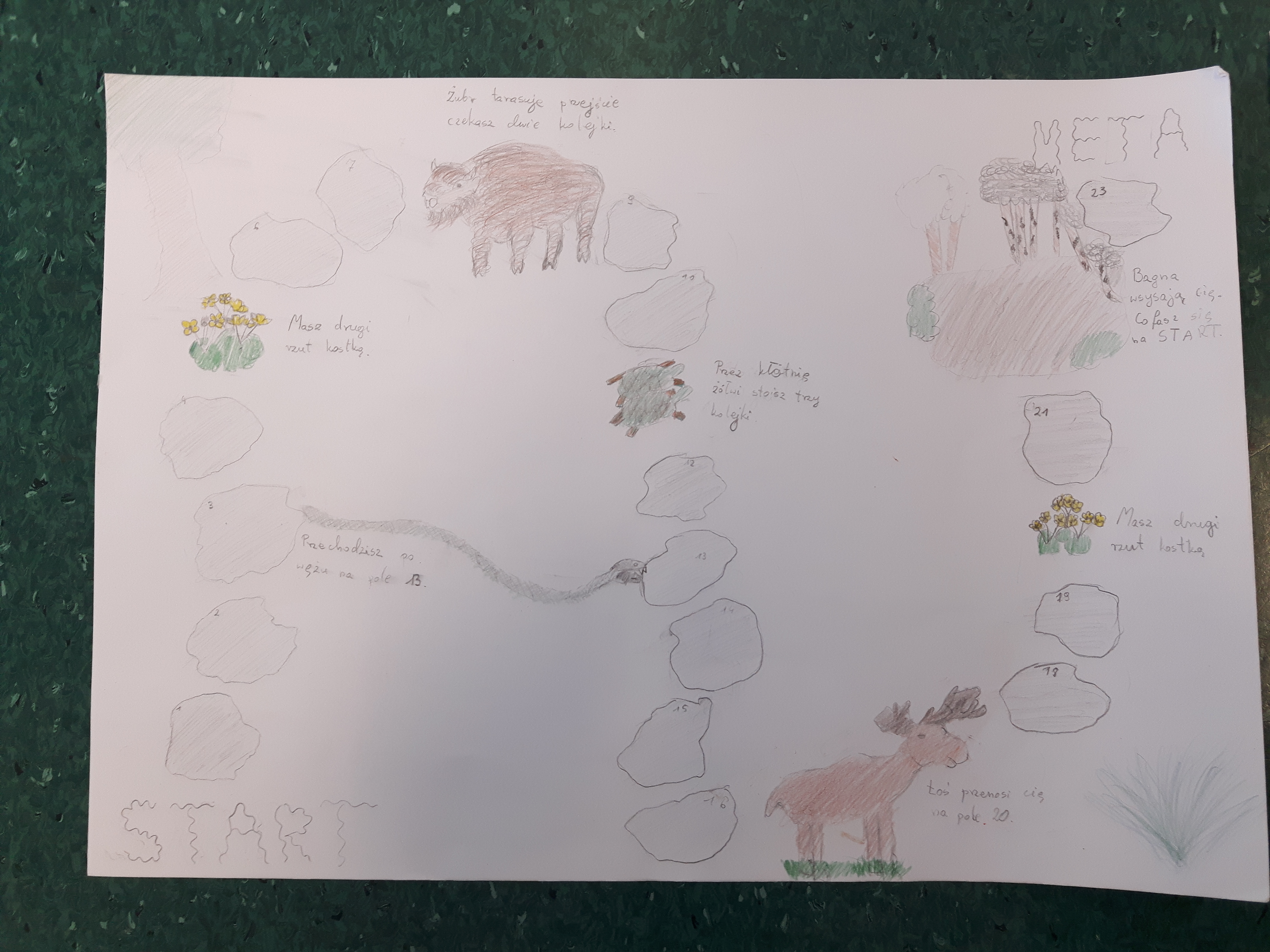 Przygotuj grę planszową, w kształcie planu Warszawy, na której przestawisz najważniejsze zabytki i atrakcje Warszawy. Przygotuj ciekawe pionki (np. w kształcie bohaterów legend warszawskich: Złotej Kaczki, Bazyliszka, Syrenki) i ilustracje.
